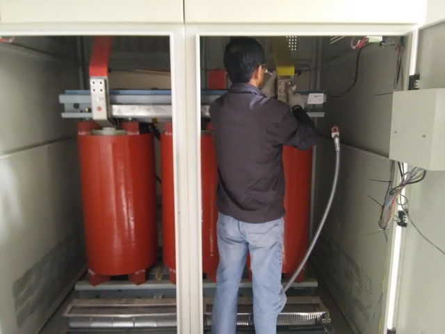 5月10日,市供電公司專業(yè)人員及物業(yè)管理部高低壓電工準時到場,有序地對6臺變壓器及17面高壓進線柜、29面低壓柜、電容補償柜等設備進行了交流耐壓試驗、直流耐壓試驗、直流電阻試驗、變比試驗、回路電阻試驗、開關測試試驗、介質(zhì)損耗角試驗、絕緣試驗及接地電阻等試驗,并對柜內(nèi)所有接線端子、螺栓、儀器儀表、繼電器等部件進行了清潔、檢測和調(diào)試。