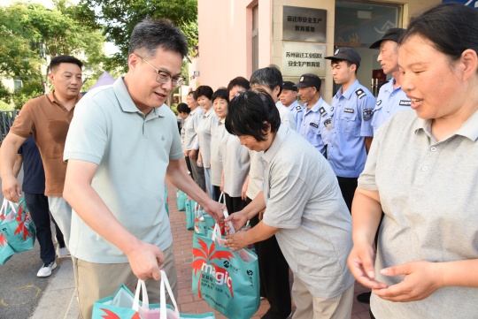 入伏以來,宿遷持續(xù)高溫晴熱天氣,給堅守一線崗位的勞動者帶來不小挑戰(zhàn)。為有效落實防暑降溫措施,切實保障一線員工身體健康與作業(yè)安全,7月24日,建發(fā)公司組織開展了一線員工高溫慰問活動。公司副總經(jīng)理倪松、相關部門負責人參加了慰問。
