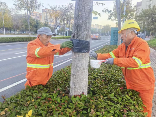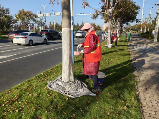 隨著氣溫逐步降低,建發(fā)公司全面啟動樹木涂白工作,為道路、公園、廣場及景觀帶的喬灌木穿上抗凍防寒、抵御病蟲害的“防護衣”,以保障其安全越冬,提高保存率,進一步擦亮城市生態(tài)底色。