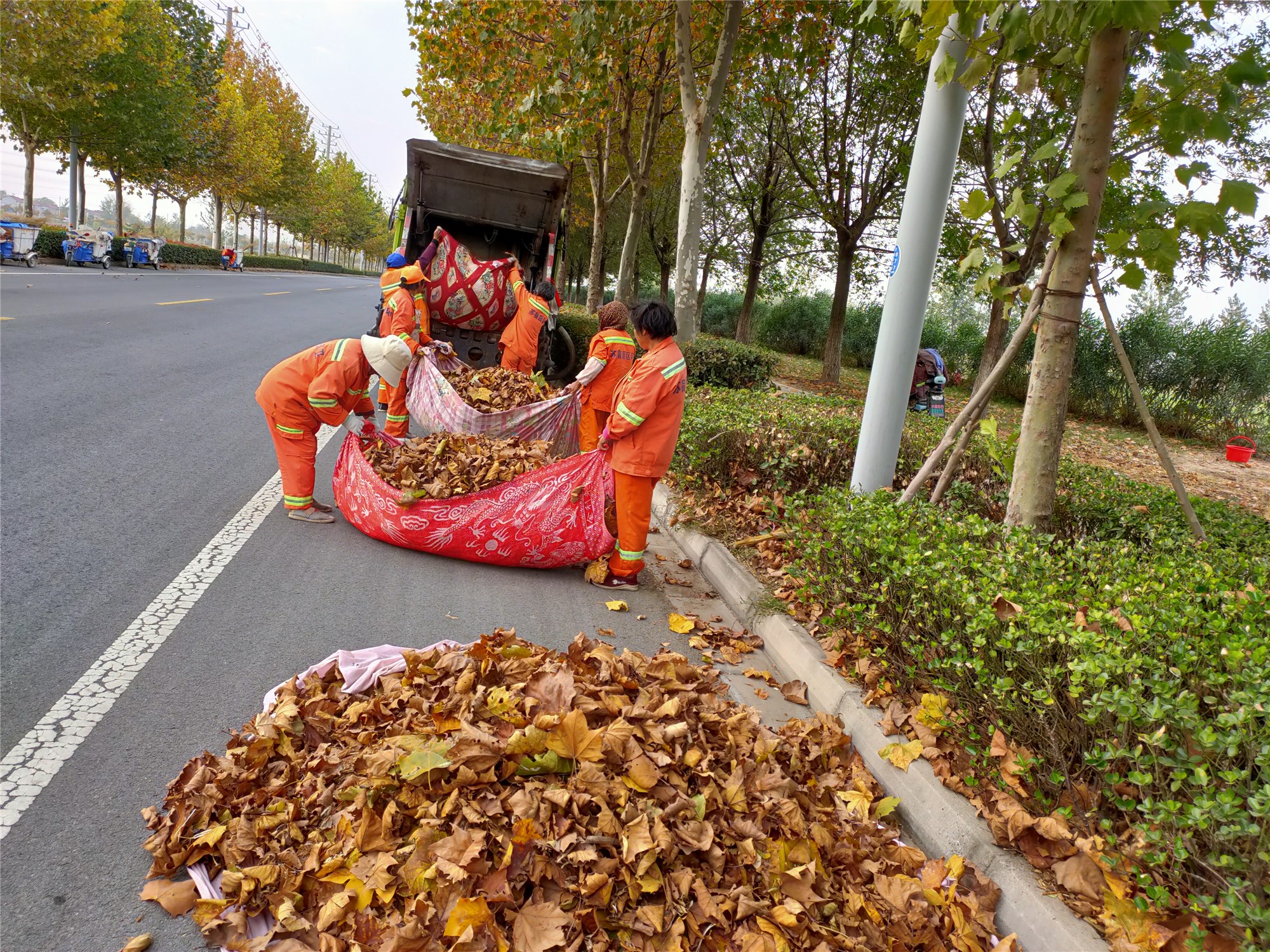公司要求保潔單位根據(jù)各路段的落葉量情況,及時(shí)調(diào)配保潔員,加大落葉清掃頻次,同時(shí)要充分調(diào)配清掃車、沖洗車,加大對(duì)落葉路段的清掃和沖洗頻率,大幅度提升了落葉清掃效率。