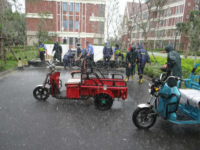 演練情景假設(shè)為下午3時突降暴雨,由于降雨量過大,現(xiàn)場地下停車場積水,存在車輛被淹的危險。在項目防汛應(yīng)急小組指揮下,立即啟動了防汛應(yīng)急預(yù)案, 24小時待命的各應(yīng)急小組進入搶險狀態(tài),迅速分頭行動,疏散人員、設(shè)置擋水圍堰、抽排停車場積水,圓滿完成防汛應(yīng)急搶險。