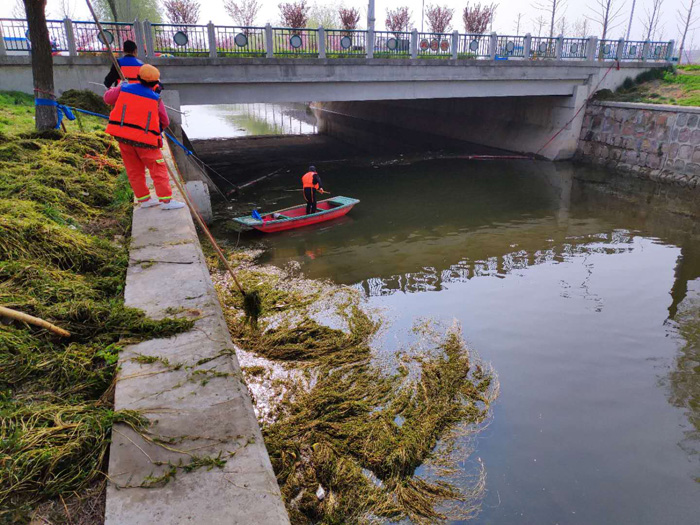 為了加快推進(jìn)河道水草打撈,改善水生態(tài)環(huán)境,公司提前制定水草清撈工作方案,每天組織近30名打撈隊(duì)員對(duì)河道進(jìn)行拉網(wǎng)式打撈,并及時(shí)對(duì)打撈的水草進(jìn)行集中清運(yùn),確保水草打撈及時(shí)、清運(yùn)及時(shí)。