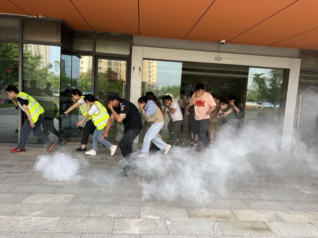 演練開(kāi)始前,生產(chǎn)力中心企業(yè)代表、保安、保潔人員集中學(xué)習(xí)了火災(zāi)預(yù)防、火場(chǎng)疏散逃生的基本常識(shí)以及如何撲救初起火災(zāi)。