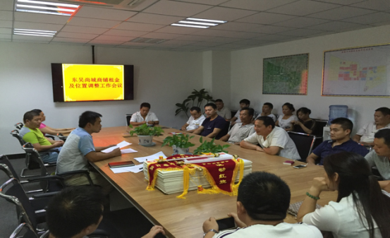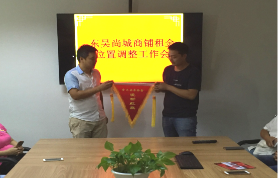 會(huì)議主要對(duì)東吳尚城美食城房租及位置調(diào)整工作進(jìn)行部署,并公布了2017年一樓美食城各檔口鋪位租金情況以及《租賃意向書》各項(xiàng)條款。
