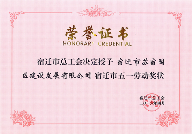 公司獲評(píng)宿遷市“五一勞動(dòng)獎(jiǎng)狀”