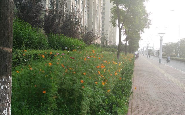 此次花草栽植種類繁多,主要有金雞菊、蛇目菊、松果菊、石竹等,本次還創(chuàng)造性地應(yīng)用了一種野花組合,既由一、二年生草本花卉及多年生宿根花卉配比組成,包括春、夏、秋三季開花的花卉種類,播種以后,從春到秋開花不斷,美不勝收。